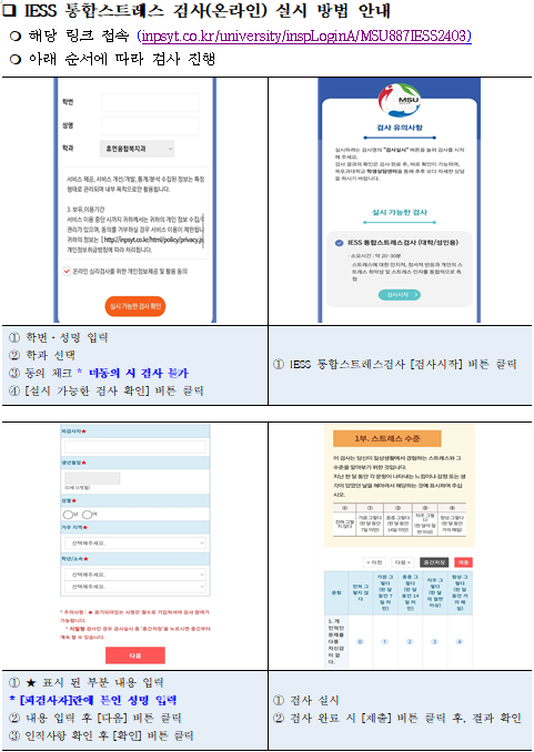 2024학년도 1학기 미래융합학부 IESS 통합스트레스 검사 안내