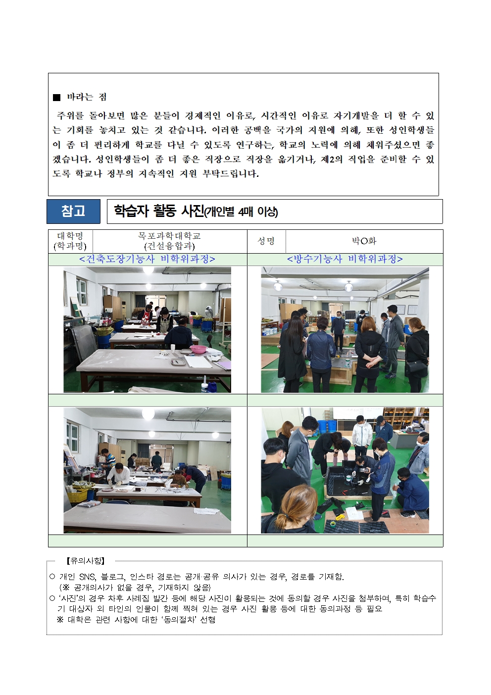 요청 및 건의사항 2020년_학습수기(목포과학대 건설융합과)_박O화 작성자 : 김행준 작성일 : 2023.09.11 23:48:53 조회 : 244 첨부파일 2020년_학습수기(목포과학대 건설융합과)_박O화001.jpg 수정 삭제 목록
