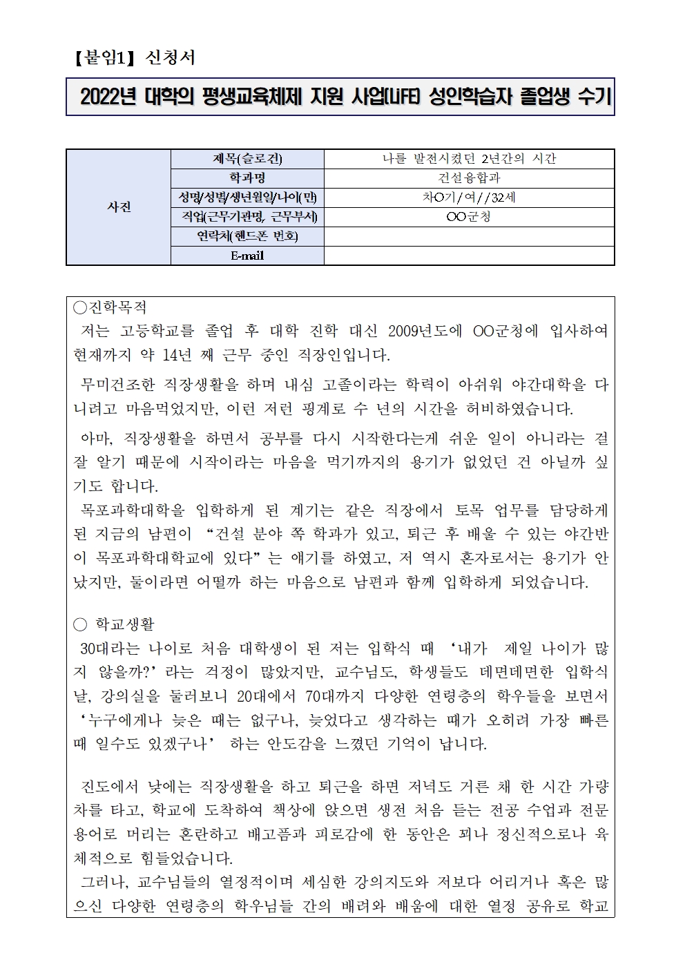 [2022년 LiFE사업 성인학습자 졸업생 수기][건설융합과_차O기]