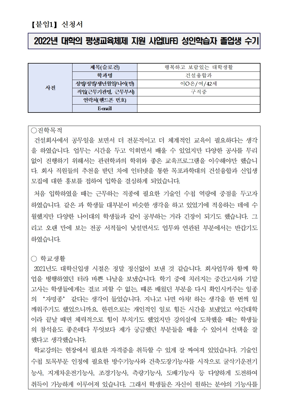 [2022년 LiFE사업 성인학습자 졸업생 수기][건설융합과_이O은]